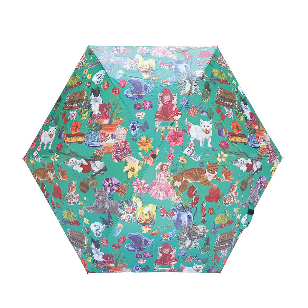 ナタリーレテの独創的な世界観をギュッと詰め込んだ、鮮やかな色合いが目をひく晴雨兼用の折りたたみ傘です。