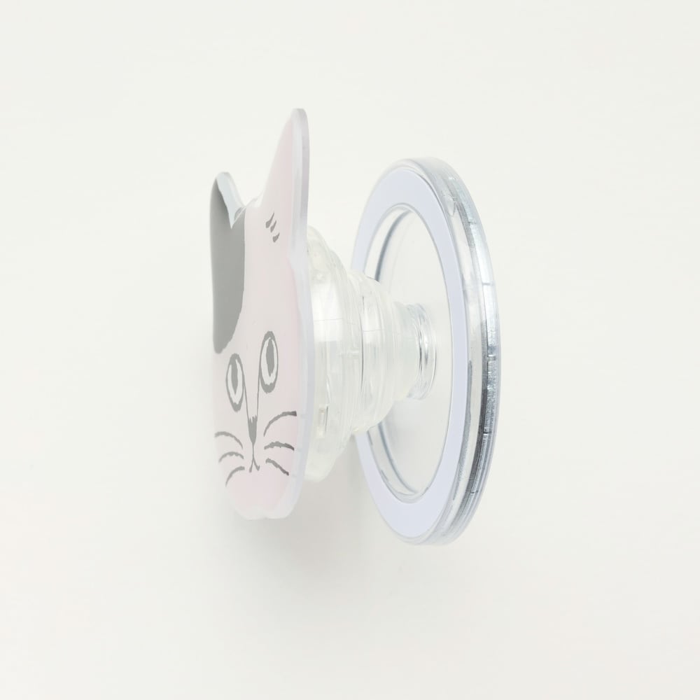 松尾ミユキさんならではの、ちょっととぼけた表情が愛らしいネコ顔モチーフの携帯グリップ。