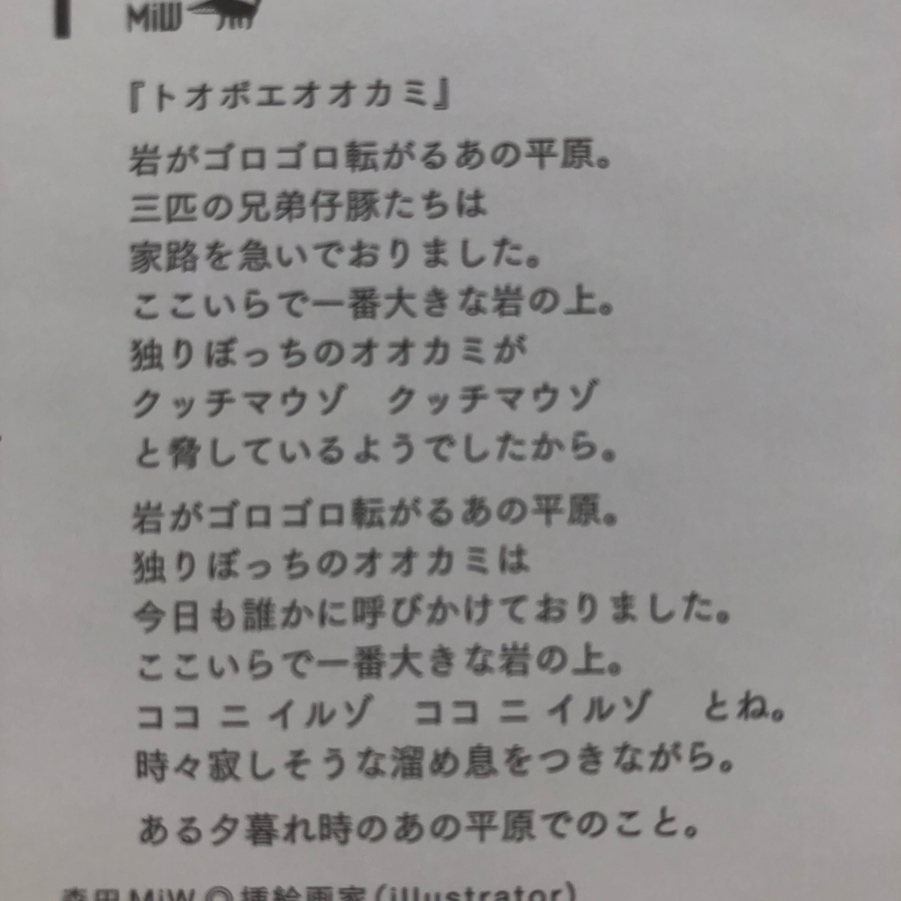 小さなポケットハンカチ『トオボエオオカミ』