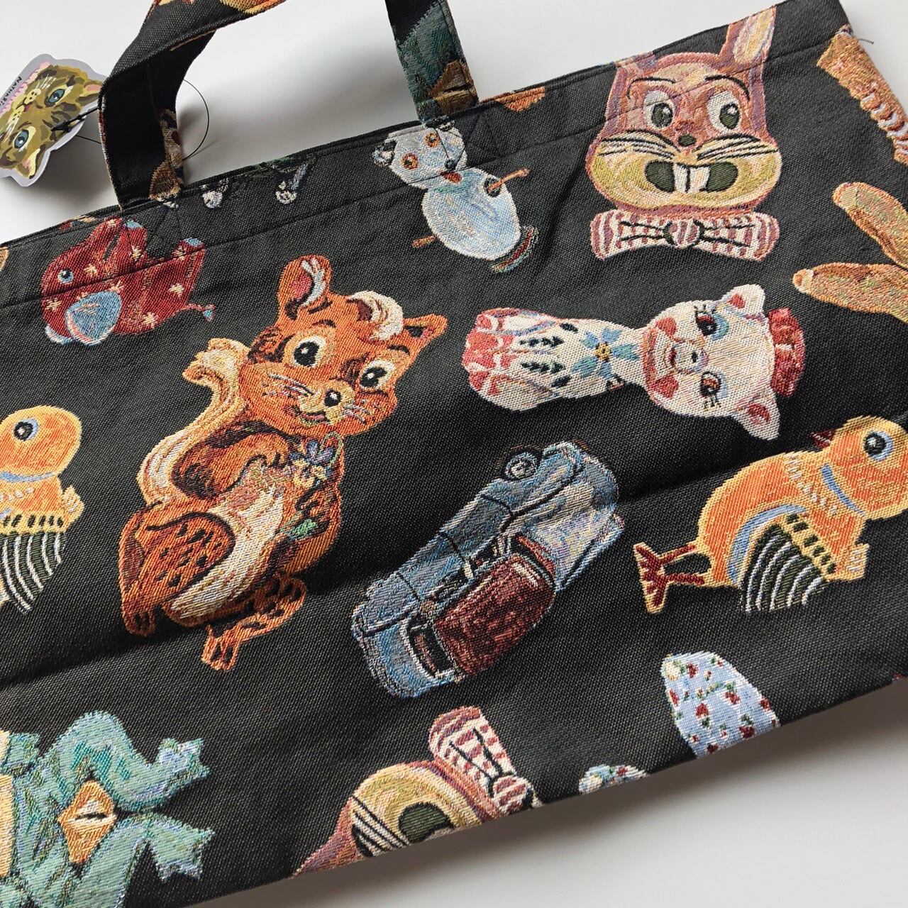 ナタリーレテさんの描く楽しいイラスト達がゴブラン織り生地に落とし込まれています。