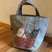 松尾ミユキさんの描くネコ達を小さなバッグに織り込みました。