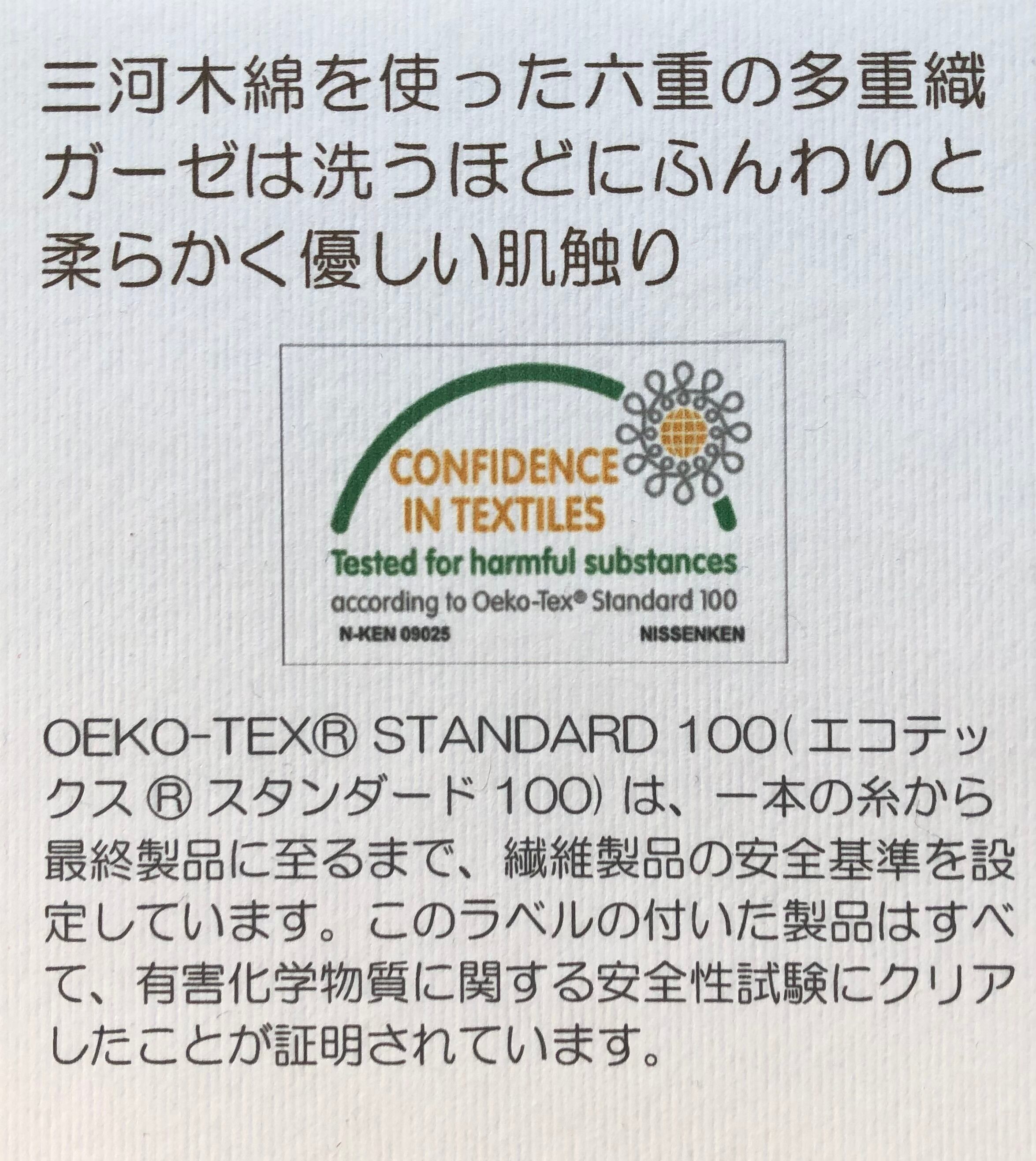 1枚1枚違う六枚のガーゼが折り重なって出来ていて、洗うたびにやわらかく肌になじむ究極の生地を使用。