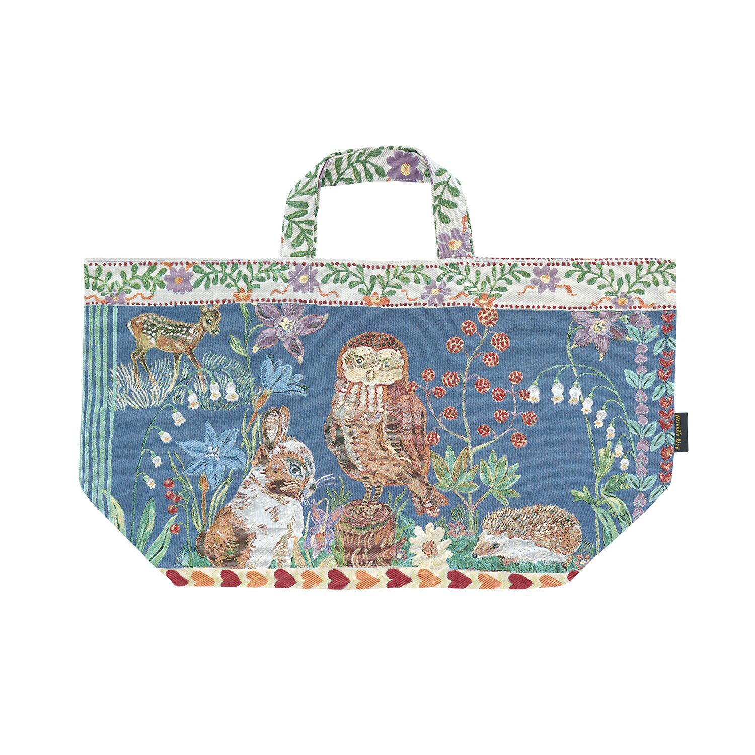 ナタリーレテさんの描く繊細なタッチの草花や動物たちを、ゴブラン織りのトートに落とし込みました。
