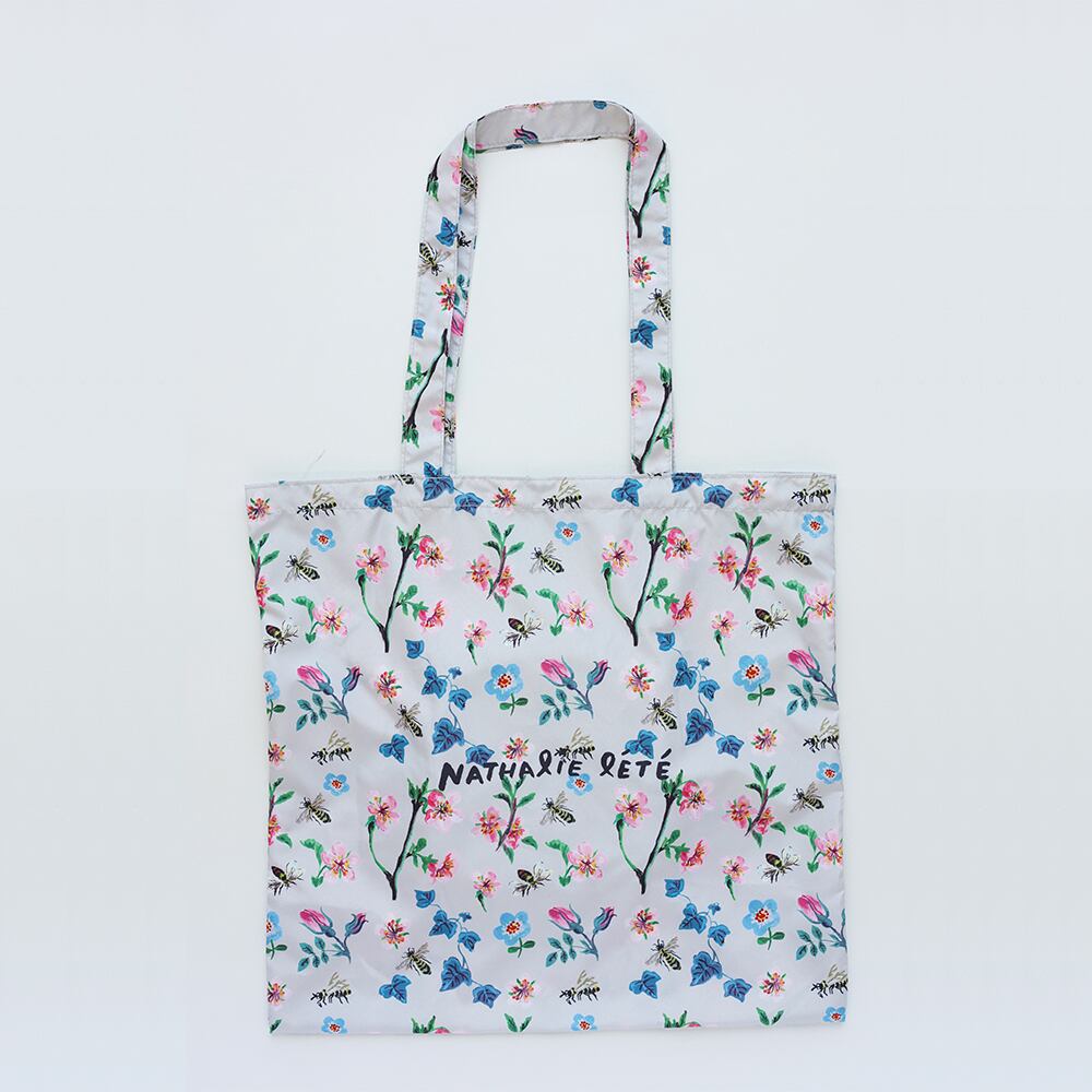 ナタリーレテさんの描くキュートな動物が目をひく収納ポーチ付きバッグ。