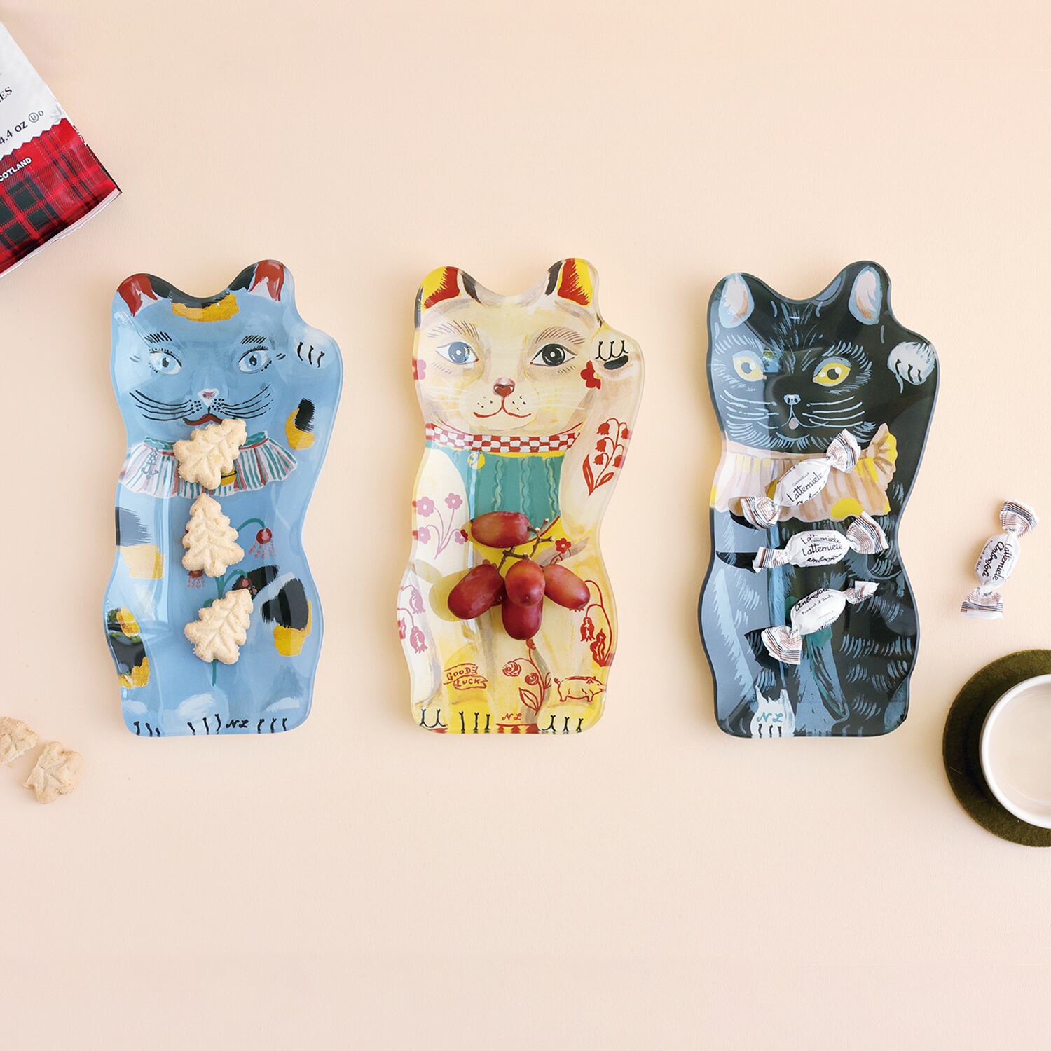ナタリーレテの描く動物シリーズで、グッと人気を伸ばしている招き猫が、そのままガラスプレートになって登場です。